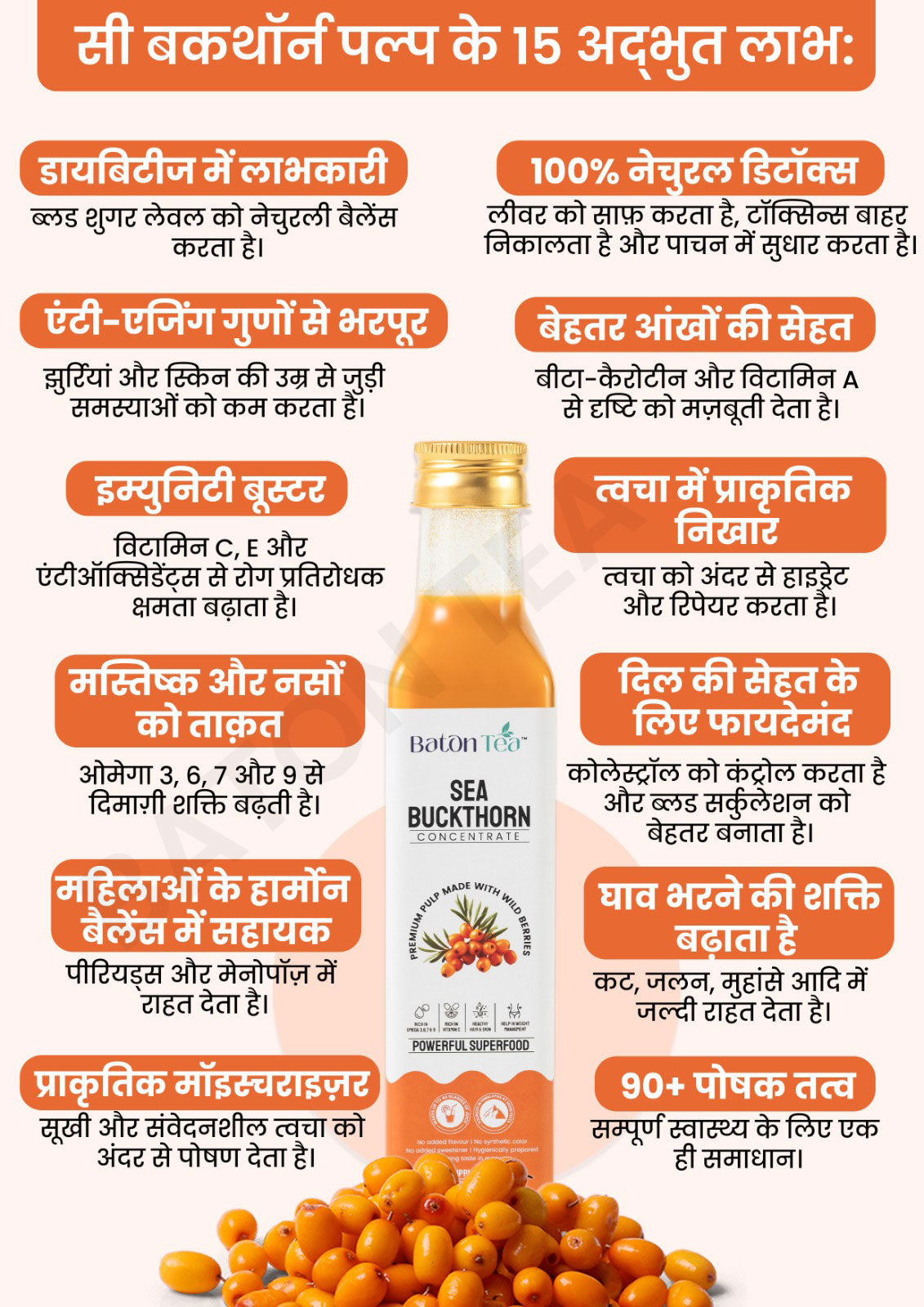✔️ Sea Buckthorn Pulp promotes skin radiance and reduces acne