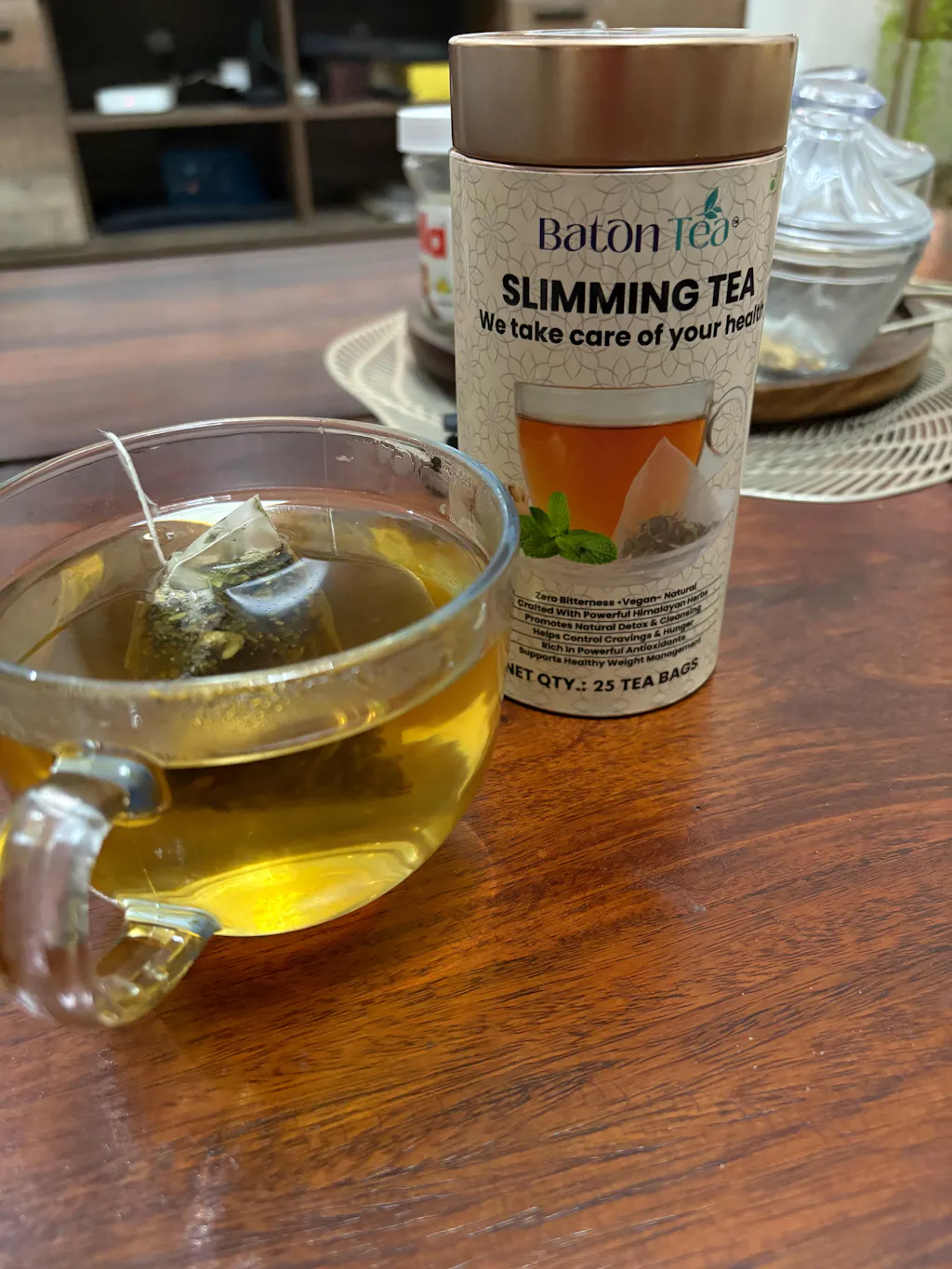 Baton Slimming Tea Bags are made with whole leaf tea, not dust-grade, ensuring fuller flavor and maximum antioxidants in every cup. Crafted with 18 natural herbs including green tea, tulsi, moringa, ginger, fennel, and cinnamon, these tea bags support weight management, boost metabolism, and improve digestion. Easy to carry and quick to brew, Slimming Tea Bags are a convenient way to stay fit and refreshed throughout the day.