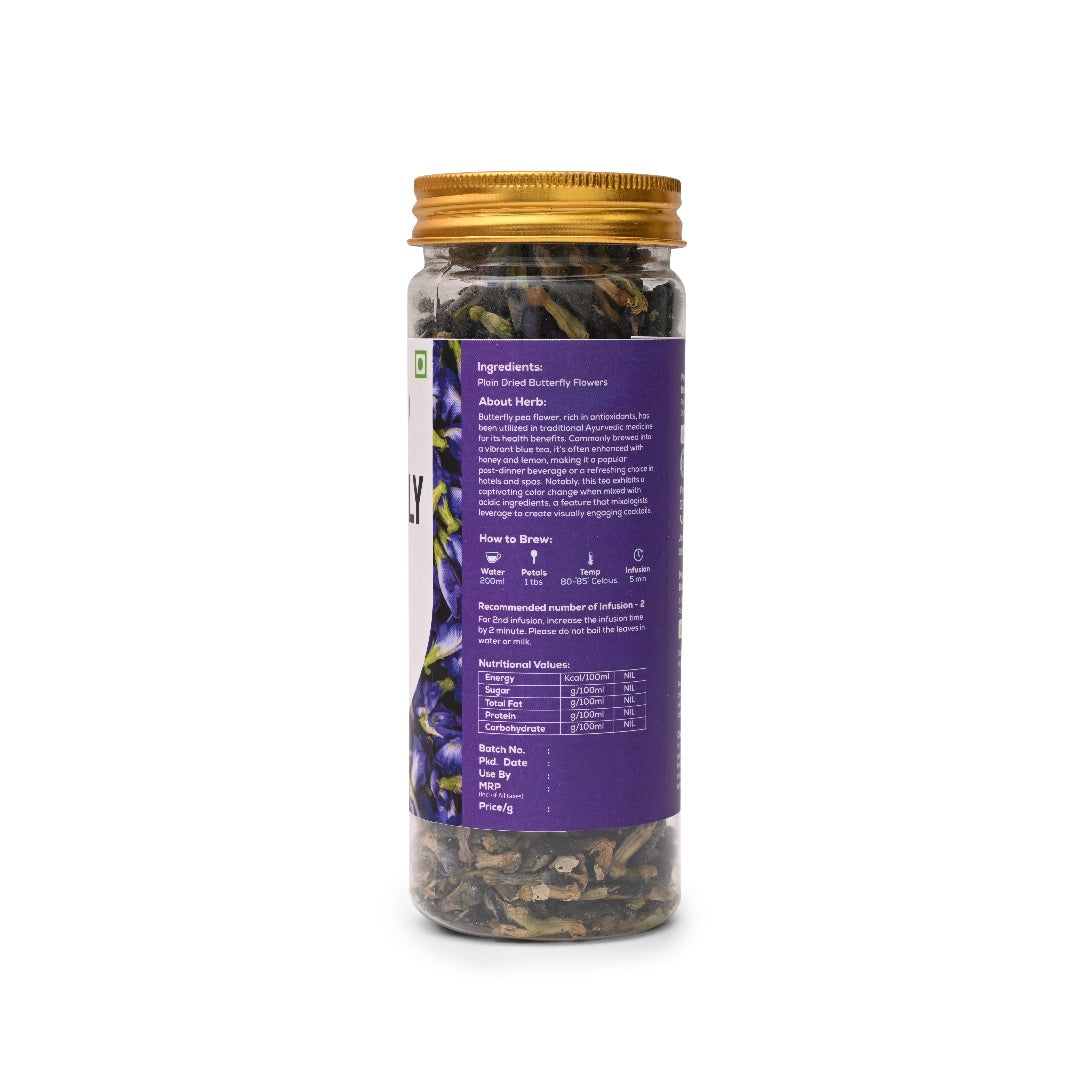Blue Tea is made from dried Butterfly Pea Flowers, a natural herbal ingredient.